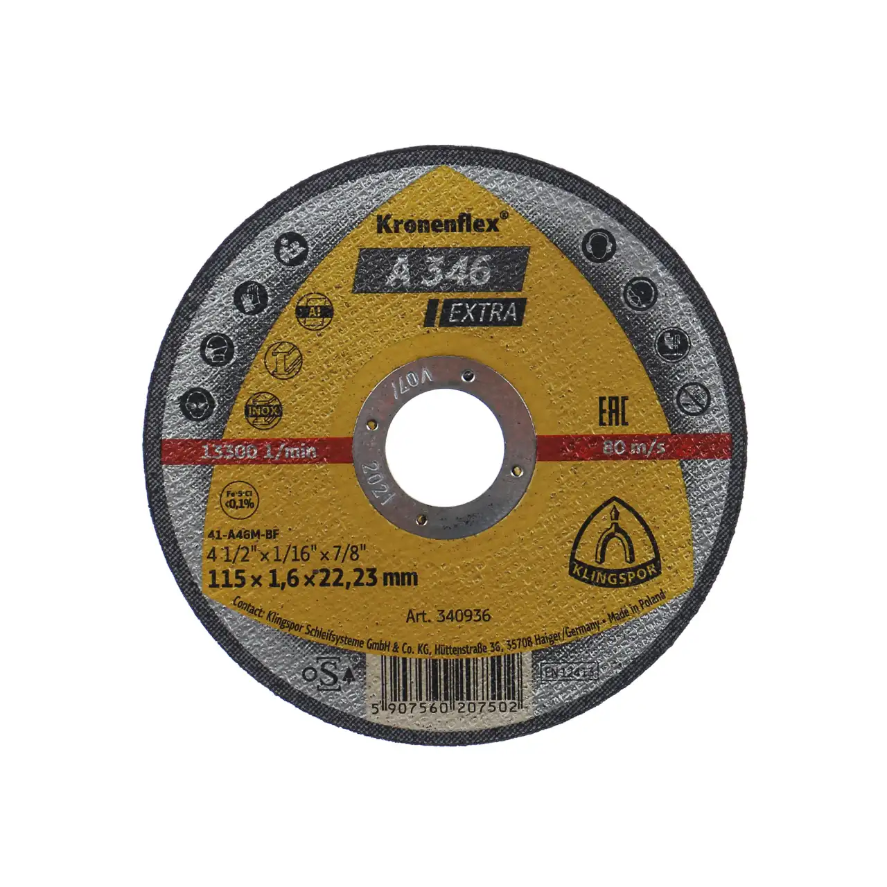 Discul de flex (panza flex) pentru metal de 115 mm in diametru este un accesoriu consumabil creat in mod special pentru taierea sigura a metalului cum ar fi: fierul, otelul, fonta, aluminiu, inoxul si nu numai. Panza de flex pentru metal de 115 mm se poate monta cu un minim de efort depus pe polizoarele de mana fixe, iesind in evidenta multumita randamentului sau superior cat si timpului de debavurare-taiere foarte redus. Discul de flex (panza de flex) pentru metal este un produs foarte rezistent ce nu se rupe si nu crapa in urma utilizarii intense.