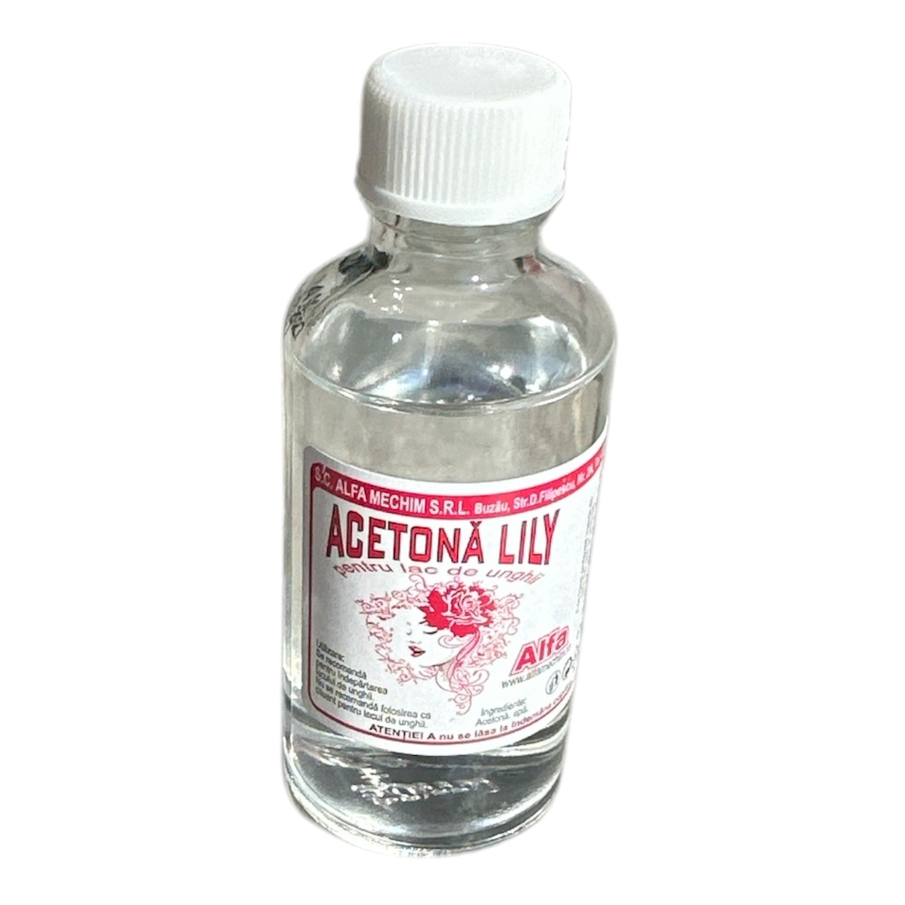 Dizolvantul cu acetona (C3H6O) la sticluta de 50 ml este un dizolvant parfumat sub forma lichida cunoscut si ca propanona sau dimetilcetona. Acesta are un miros puternic si intepator (usor dulceag), incolor, foarte inflamabil, capabil sa dilueze sau dizolve majoritatea solventilor (unele vopsele, lichide lipicioase, super glue sau pentru inlaturarea lacului si ojei de unghii). Fiind formata din acetona pura si apa se mai utilizeaza in extragerea rasinii, lipidelor, colofoniului, uleiurilor sau acetatului de celuloza. De asemenea, acetona cu formula chimica C3H6O, indeparteaza foarte rapid petele de marker permanent dupa suprafete tari, dilueaza vopseaua vascoasa, curata petele de vopsea sau oja dupa textile.