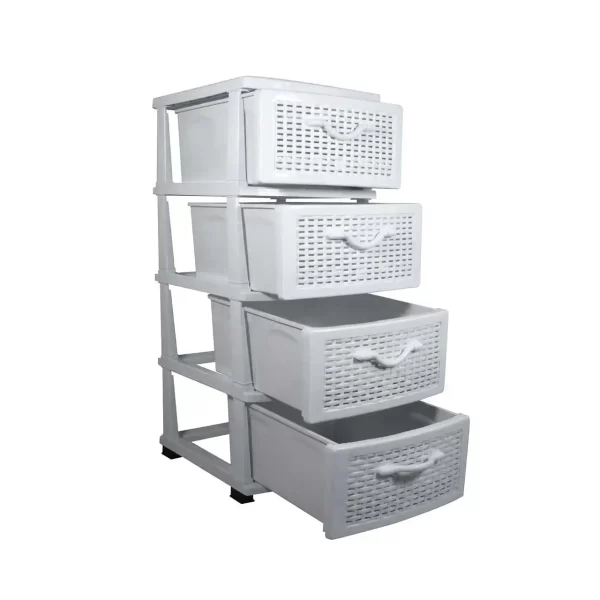 Dulap cu 4 sertare alb , fabricat din plastic alb, rezistent. Dispune de 4 sertare spatioase dotate cu manere pentru o manevrare usoara.