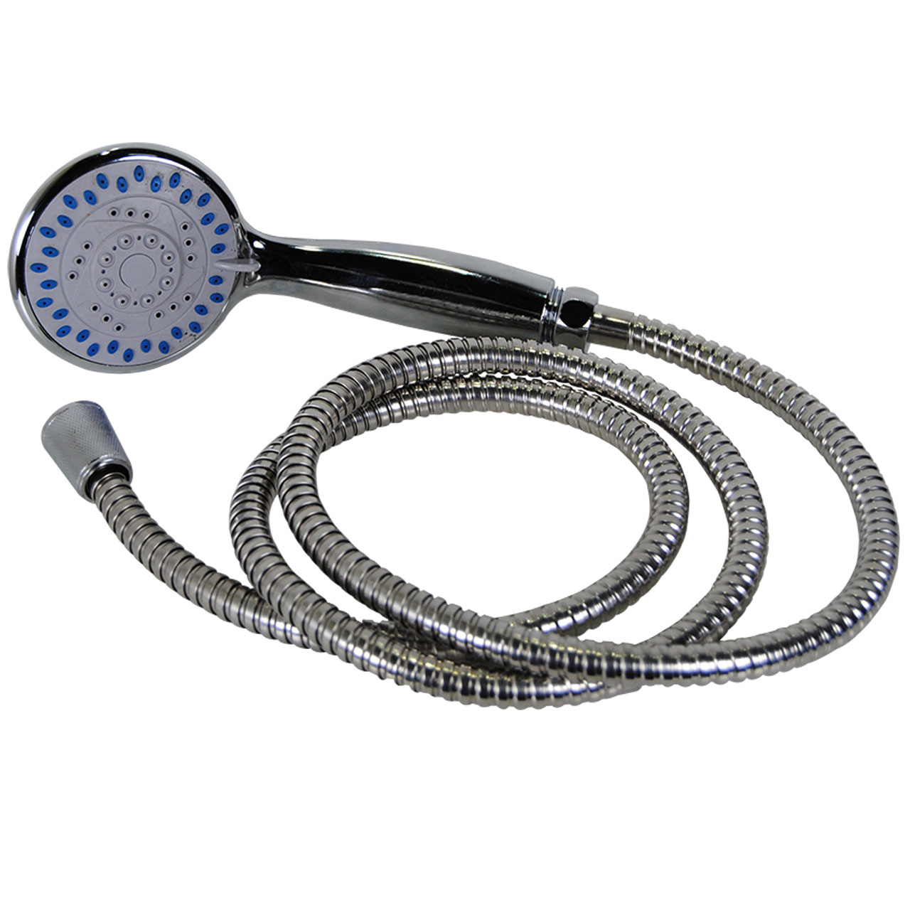 Dus pentru baie 2 M este alcatuit dintr-un furtun lung de 2 metri obtinut din metal cromat, o para mare realizata din plastic dur cu cap cauciucat si suport de perete pentru para de dus. Para de dus cu cap mare asigura un flux mare de apa in 3 functii: curgere dreapta cu bule, imprastiat fara bule de aer si imprastiat cu bule. Multumita suprafetei cauciucate al capului de dus, puteti masa pielea corpului sau chiar si scalpul in timpul dusului.