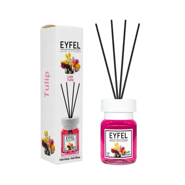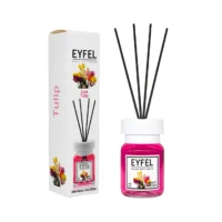 Parfumul de camera cu betisoare, Eyfel tulip (parfum lalele), la 120 ml este un odorizant special ce imbina eleganta si rafinamentul florilor de lalele pentru a crea un ambient interior placut parfumat si deosebit in orice incapere. Parfumul de camera cu LALELE (tulip de la Eyfel) emana o aroma delicata si imbietoare, care te invaluieste intr-un parfum proaspat de primavara. Aroma suava a lalelelor te cucereste instantaneu, aducand un sentiment de primavara in fiecare colt al casei tale.