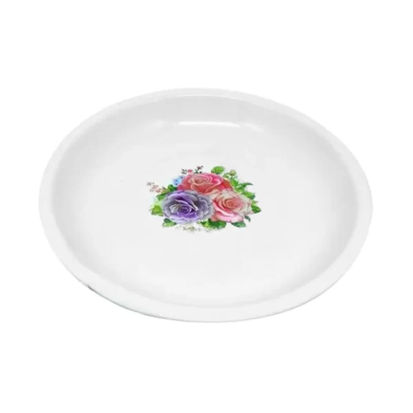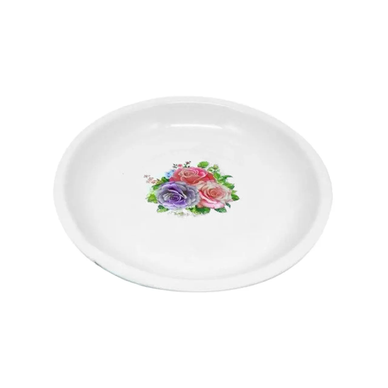 Farfurie emailata, alba cu model trandafiri, 22 cm
