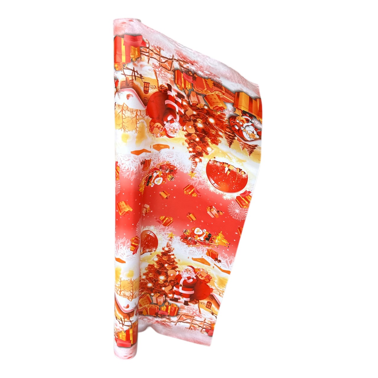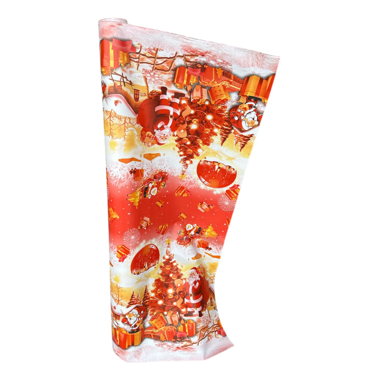 Fata de masa de Craciun din PVC va imbunatateste aspectul vizual livingului in preajma sarbatorilor de iarna, atunci cand se aduna toti membrii familiei. Aceasta fata de masa pentru Craciun este placut decorata cu brazi impodobiti, oameni de zapada, stelute si desigur, mos craciun. Datorita faptului ca este fabricata din PVC aplicat pe fibre textile este 100% impermeabila si extrem de rezistenta la forta de intindere astfel incat sa nu se rupa usor.
