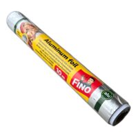 Folie aluminiu Fino tip alimentara cu lungimea de 10 M, embosata pe suprafata ei este un produs de inalta calitate, util in ambalarea si pastrarea prospetimii alimentelor. Multumita faptului ca este obtinuta din aluminiu alimentar, nu numai ca veti mentine prospetimea alimentelor, le veti asigura si protectie impotriva murdariei, prafului si oricaror alte impuritati exterioare. Aceasta folie aluminiu alimentara Fino are o latime de 29 cm este suficient de groasa, astfel incat sa nu se rupa usor si poate rezista la temperaturi inalte, ce pot atinge 220 grade. De asemenea, aceasta folie aluminiu alimentara embosata este foarte buna si pentru invelirea alimentelor pe care le pastrati in frigider sau pentru acoperirea fripturilor in cuptor. NU utilizati folia din aluminiu FIno in cuptorul cu microunde.
