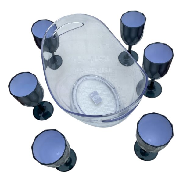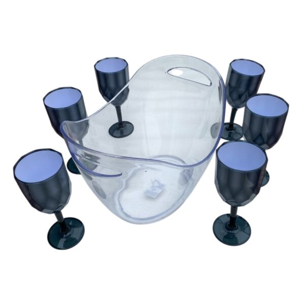 Frapiera mare pentru gheata si 6 Pahare din plastic gri cu picior
