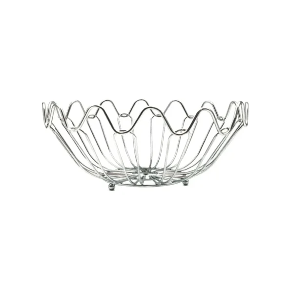 Fructiera metalica are un design aspectuos miltumita finisajului cromat si ondularilor existente pe marginea superioara. In plus, structura ei este foarte solida, care nu permite flambarea sau deformarea ei in timpul utilizarilor. Curatarea ei poate fi facuta cu apa calda si detergent de vase, apoi stearsa cu un prosop uscat.