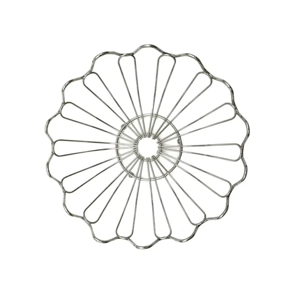 Fructiera din metal cu diametrul de 23 cm si inaltime de 10 cm este un vas format din bari subtiri metalice in forma unui bol in care se pot pastra orice fel de fructe. Acesta dispune de 3 picioruse ce asigura o buna stabilitate fructierei pe orice tip de suprafata (masa, blat, etc).