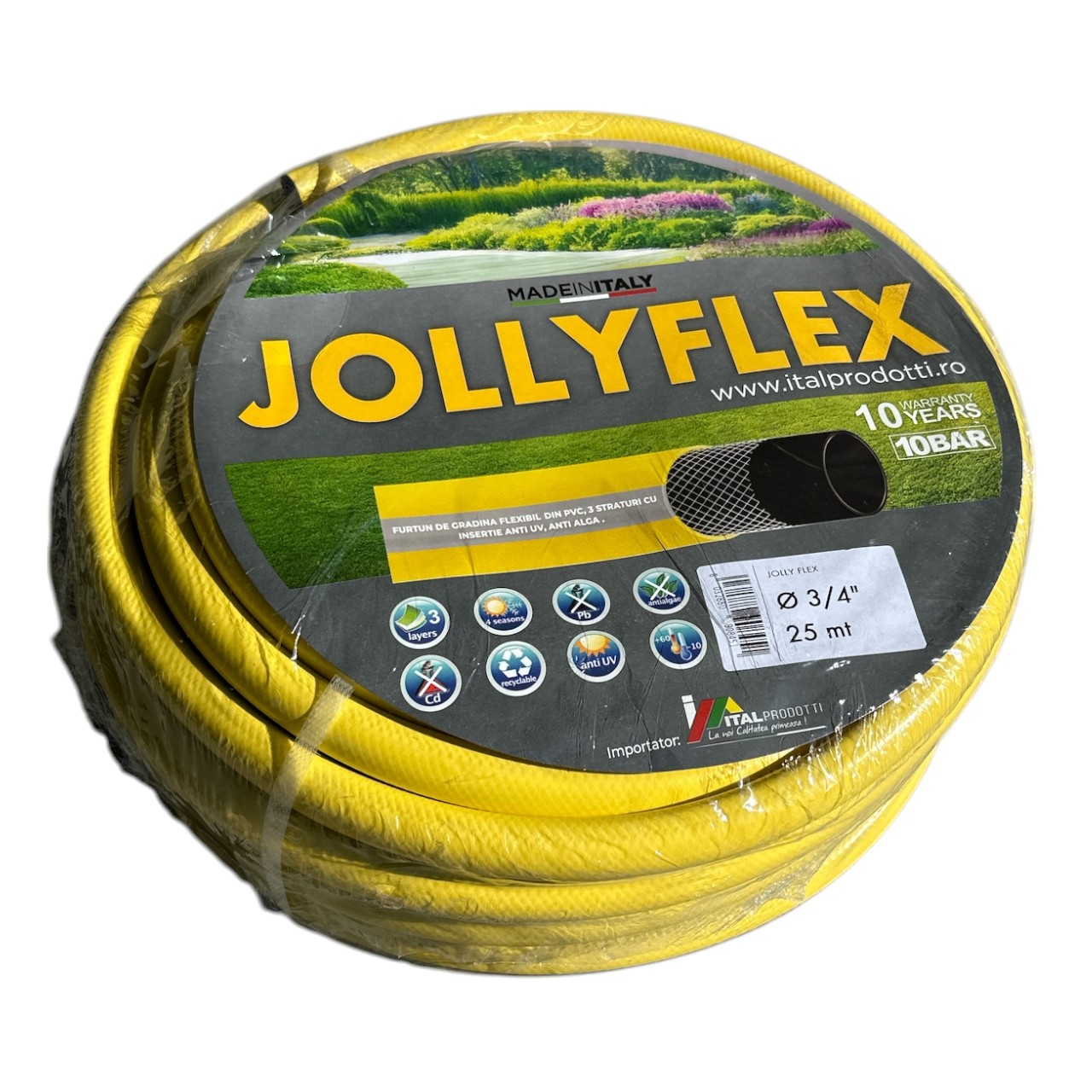 Furtunul armat pentru gradina de 3/4, la rola de 25 m este prevazut cu intariri speciale, prin insertii de fibre dure si multiple stratificari de material (PVC) pentru a asigura o durabilitate inalta. Furtunul armat pentru gradina asigura utilitate in gospodarii sau zone industriale, fie ca il folositi pentru a uda florile, legumele din gradina sau pentru transferul unor lichide alimentare / chimice. Furtunul armat rezista foarte bine la presiuni mari de apa, uzura intensa si prelungita, raze ultraviolete si manevrari mecanice dure.