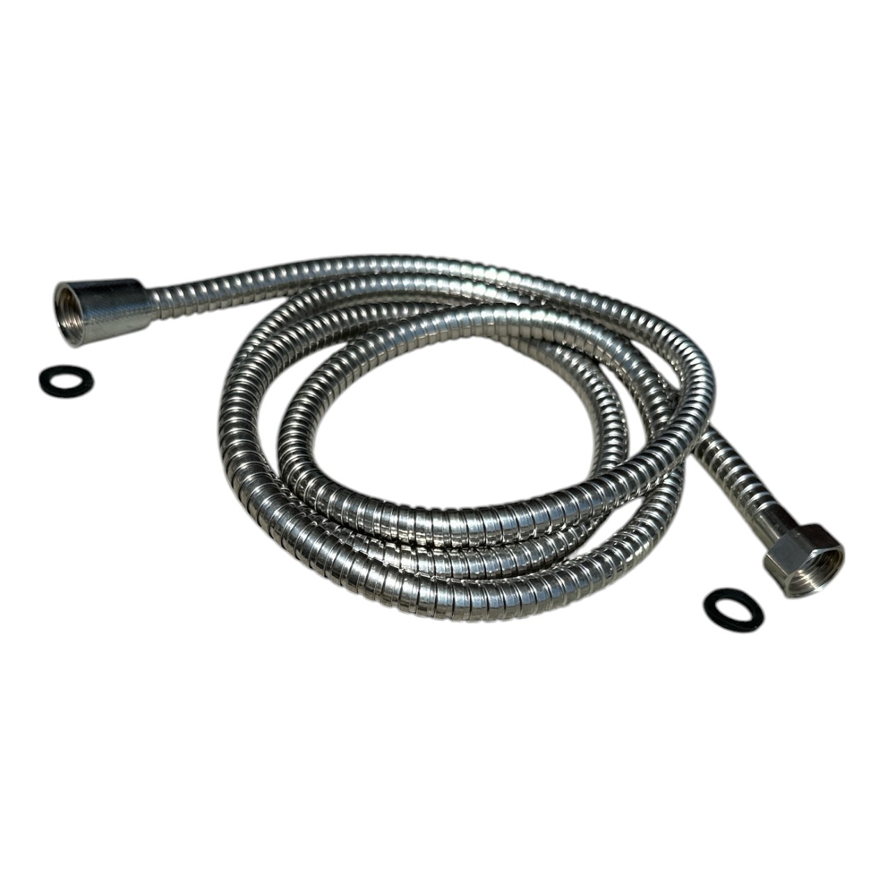 Acesta este un furtun pentru dus 1.5 m, cauciucat acoperit in metal cromat, super flexibil, ideal pentru orice cada sau cabina de dus, fiind potrivit pentru orice fel de baterie standard. Acest tip de furtun pentru dus 1.5 m este foarte durabil chiar daca este supus socurilor, este imun la rugina, iar petele si calcarul depus, se poate indeparta prin simpla stergere cu o carpa. Datorita filetelor pe ambele capete cat si flexibilitatii lui, acest furtun se monteaza in cateva secunde pe bateria cazii sau cabinei de dus iar pe celalalt capat, se poate monta orice fel de para pentru dus.