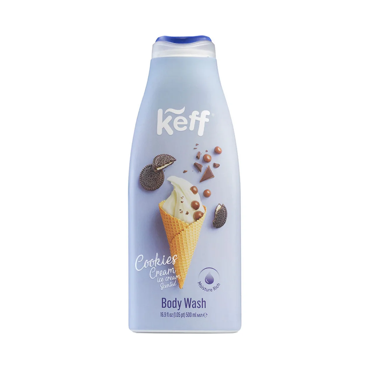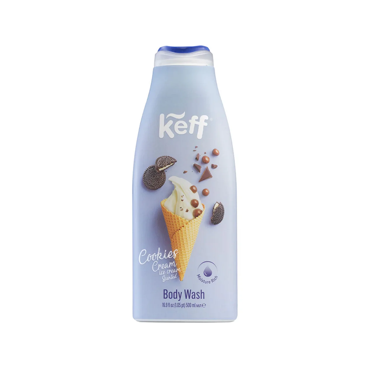 Gelul de dus Keff cu cookies and ice cream la 500 ml iti va rasfata simturile si va transforma fiecare dus intr-o experienta aromatica si dulce ce va lasa pielea hidratata, curata si moale. Parfumul dulce de cookies si ice cream, face fiecare utilizare o adevarata placere. Gelul de dus Keff curata delicat pielea, eliminand impuritatile, murdaria si orice miros neplacut fara a usca pielea. Textura sa bogata si cremoasa creeaza o spuma abundenta, oferind o senzatie de confort si prospetime. Ideal pentru toate tipurile de piele.