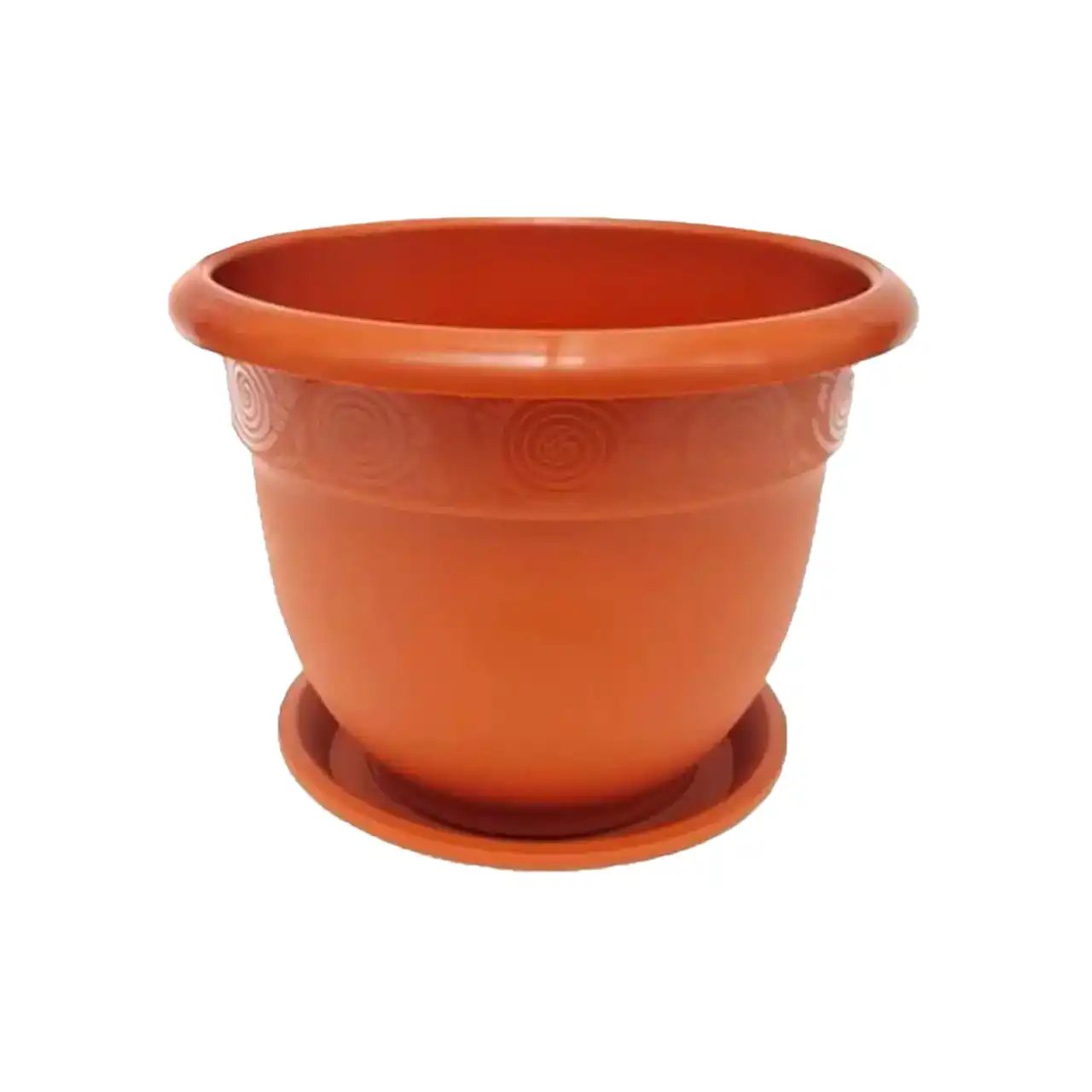 Ghiveciul de flori din plastic cu diametrul de 23 cm si culoare maro va ofera posibilitatea sa plantati florile preferate, permitandu-le spatiul necesar pentru dezvoltarea armonioasa a tulpinii, multumita formei sale conice si margini arcuite. Datorita faptului ca este fabricat din plastic (HDPE) acest ghiveci flori cu 23 cm diametru, maro poate fi manipulat cu mare usurinta, astfel incat sa beneficiati de un avantaj din punct de vedere al greutatii atunci cand trebuie sa il mutati. Tipul acesta de ghiveci plastic de flori permite sustinerea tuturor tipurilor de flori sau plante sensibile la lumina sau anumite temperaturi si nu interactioneaza negativ cu mineralele si nutrientii existenti in pamantul de flori. Peretii sai sunt durabili in timp si persista foarte bine la socurile accidentale schimbari bruste de temperatura si intemperiile din exterior.