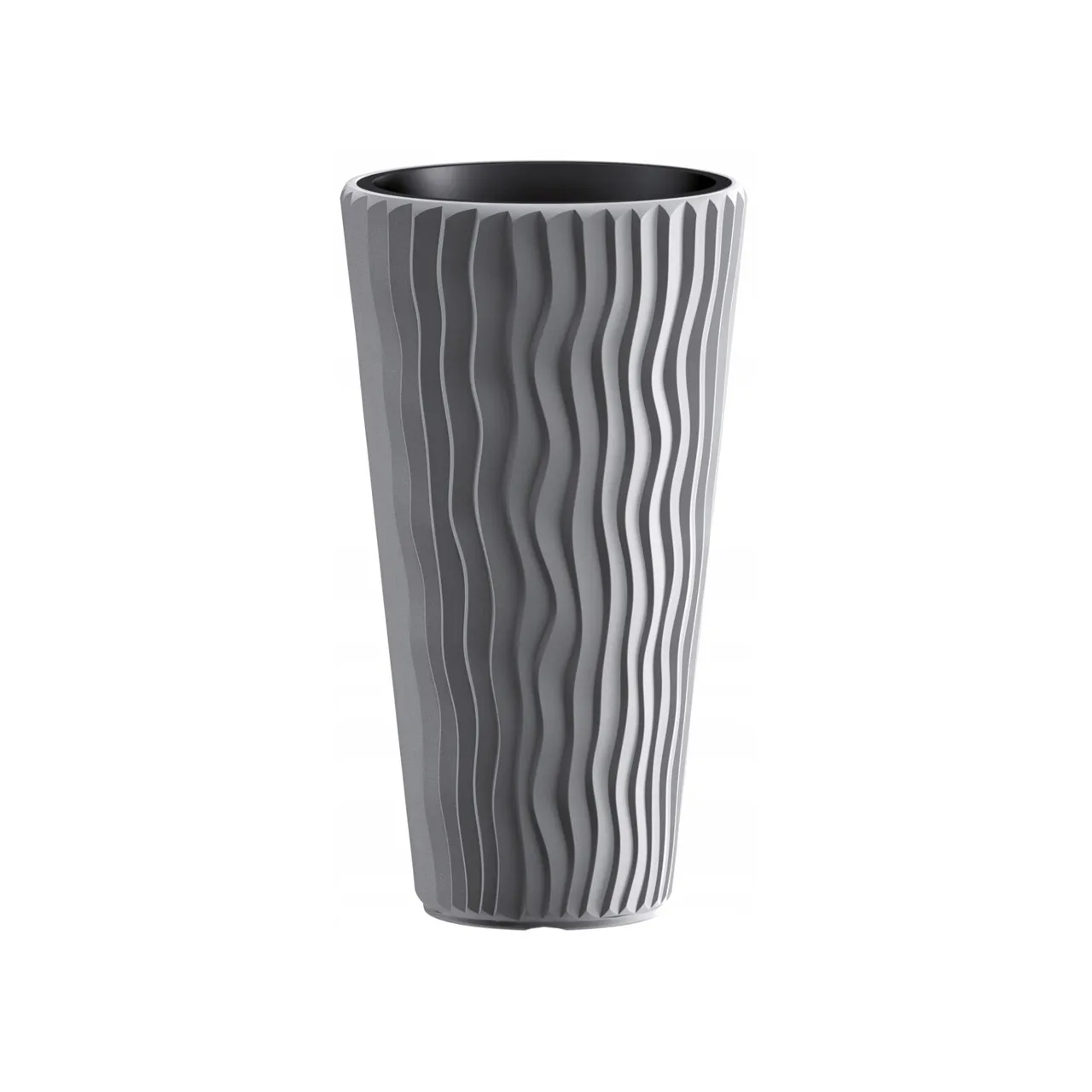 Ghiveci inalt de interior si exterior de culoare gri si forma rotunda este un produs cu adevarat unic, deoarece are un model texturat, asemanator dunelor de nisip, ceea ce il face cu atat mai atractiv si interesant. Dimensiunile sale sunt de 35 x 60 CM, ceea ce il face destul de mare pentru plantarea florilor cu radacini adanci, dar totodata usor de manevrat si de mutat datorita formei sale rotunde cu baza mai ingusta si gura mai mare.