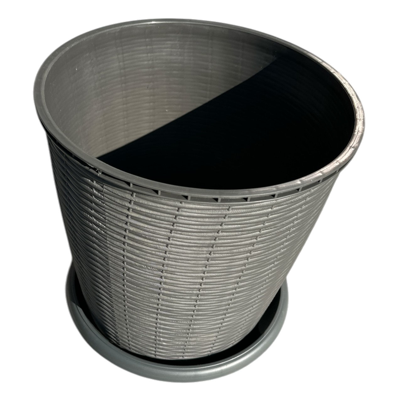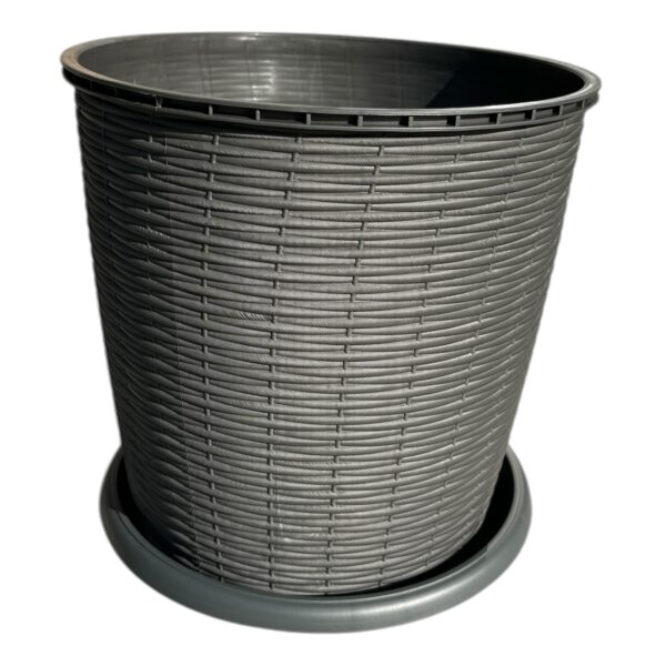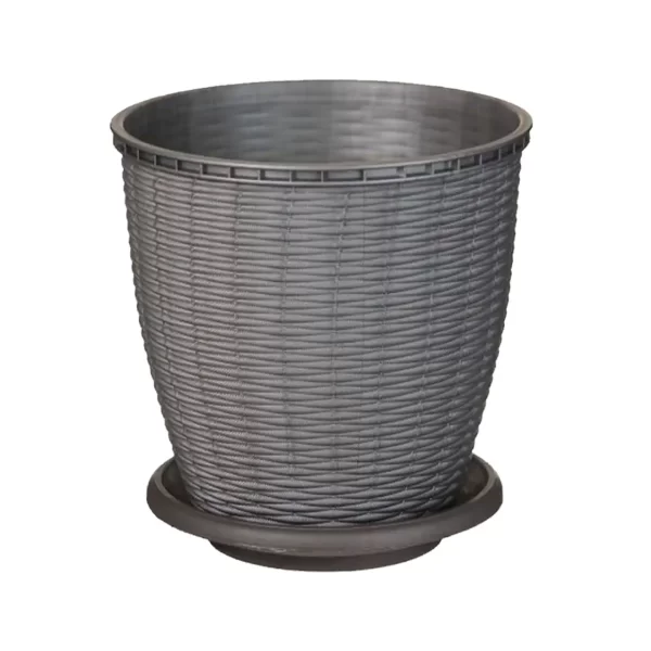 Ghiveci plastic decorativ imitatie ratan gri 16 litri