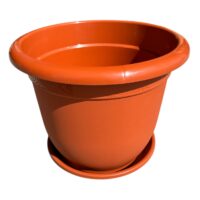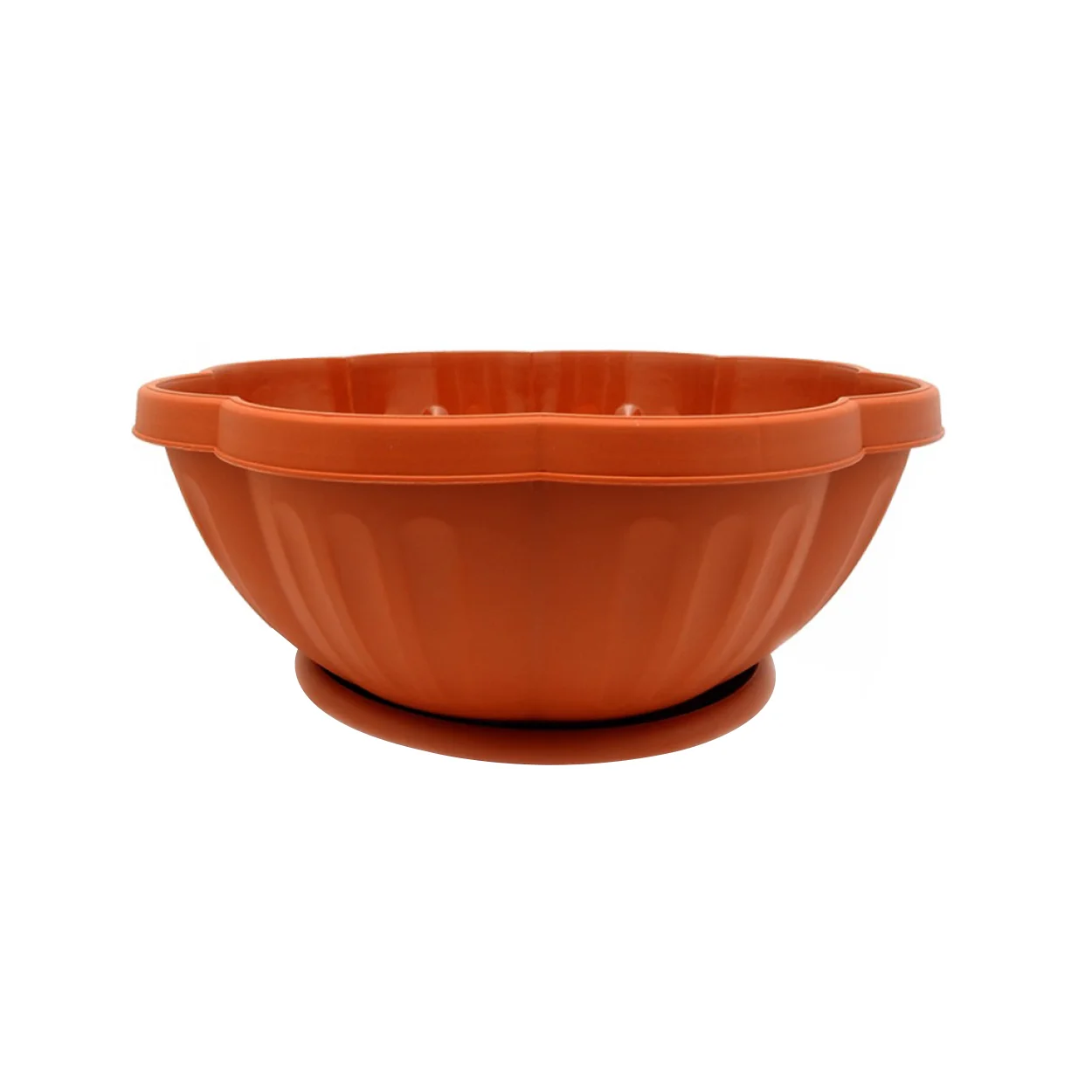 Ghiveciul din plastic in forma de floare dotat cu farfurie, avand un diametru de 24 cm are culoarea maro, este si asigura infrumusetarea spatiului in care este amplasat. Acesta are o forma asemanatoare unei flori, cu margini arcuite, aducand un plus de farmec oricarui ambient. Atat ghiveciul cat si farfuria sunt fabricate din polipropilena pentru a asigura durabilitate in timp si rezistenta sporita impotriva umiditatii, modificarilor de temperatura sau decolorarii. In plus, farfuria are margini inalte pentru prevenirea scurgerii apei pe jos evitand in acest fel murdarirea podelei in jurul ghiveciului. Ghiveciul de plastic in forma de floare este suficient de mare si poate fi utilizat pentru orice tip de planta sau floare sezoniera.