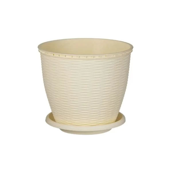 Specificatii Ghiveci plastic imitatie ratan crem 6L: