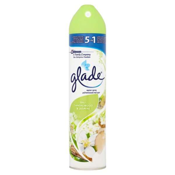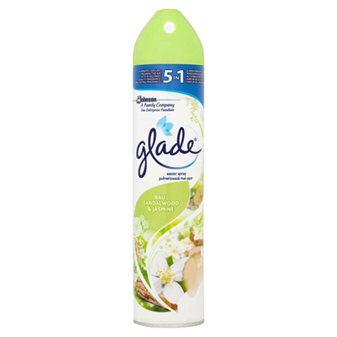 Odorizantul de camera Glade imbuteliat intr-un recipient spray aerosol in cantitate de 300 ml avand aroma Bali Sandalwood and Jasmine (lemn de santal bali si iasomie) elimina mirosurile neplacute din incapere si improspateaza casa cu cel mai puternic si parfumat miros din partea firmei Glade. Solutia parfumata este imbuteliata intr-un recipient sub presiune si perforarea acestuia nu se recomanda nici macar dupa golirea tubului. Lemnul de santal si iasomie este puternic mirositor si parfumul lui o sa persiste in camera in care este dispersat.