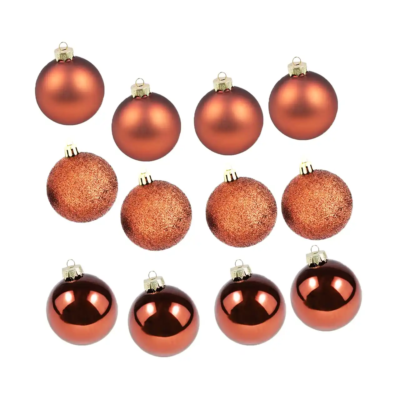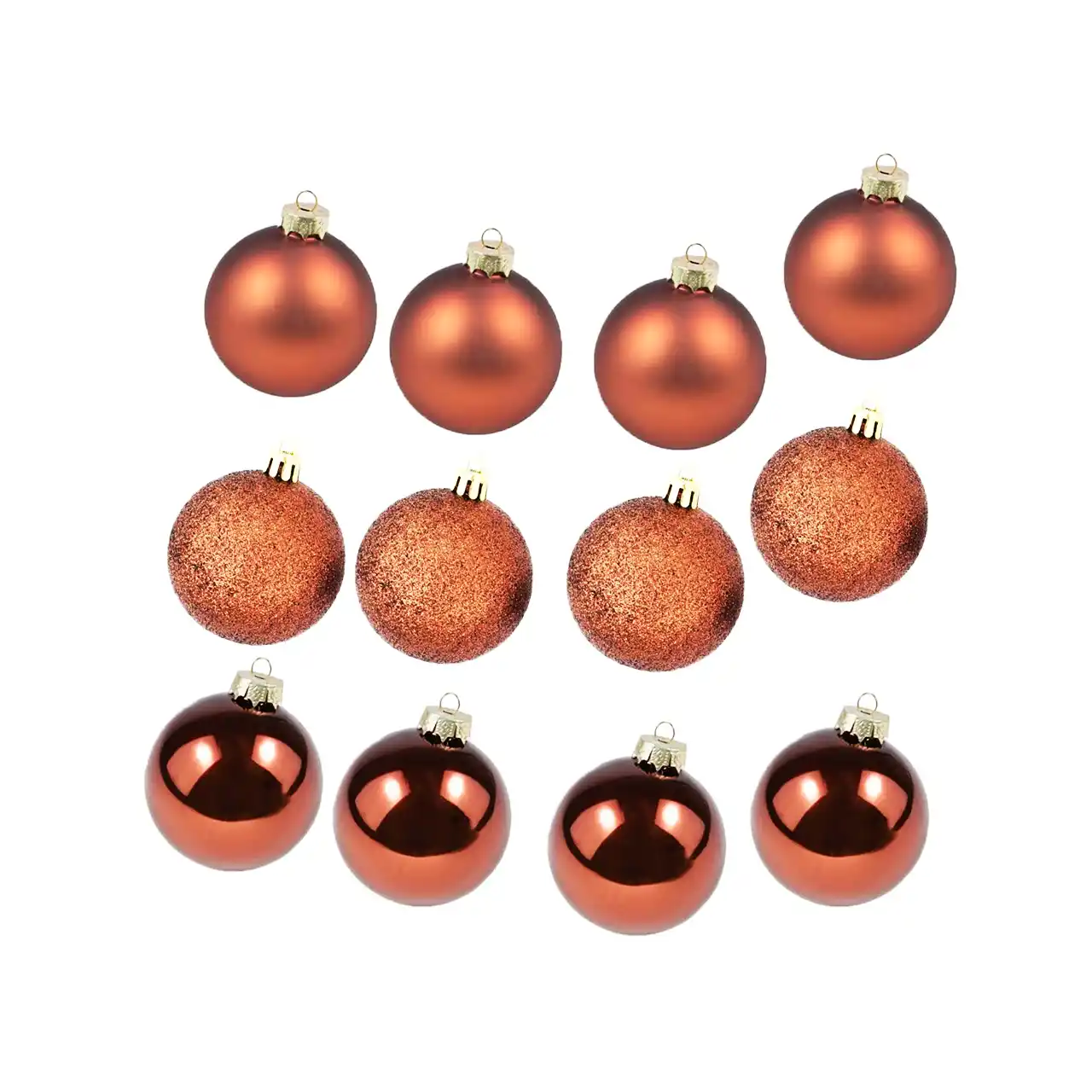 Globurile de craciun lucioase sau mate de culoare maro ce vin la set de 12 bucati va ofera decoratiunea mult dorita a bradului de craciun, caminul sau biroul. Aceste globuri de craciun va aduce bucuria sarbatorilor de iarna multumita design-ului lor deosebit si aspectului de sticla adevarata. Globurile de craciun lucioase si mate sunt realizate din plastic, astfel incat sa nu se sparga prea usor si sa aibe o greutate cat mai redusa pentru a nu apleca crengile bradului in momentul in care impodobiti. Setul de globuri de craciun include 4 globuri lucioase, 4 mate si 4 cu sclipici.
