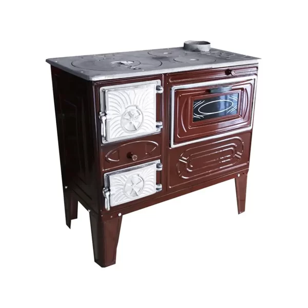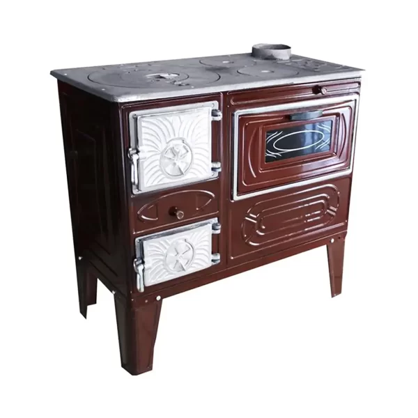 Soba pe lemne cu plita si cuptor tip Godin este fabricata din otel emailat pe exterior, are caramizi de samota in interior, iar usile si plita sunt fabricate din fonta plina. Soba pe lemne cu plita si cuptor de gatit va asigura atat un confort termic sporit cat si posibilitatea de a gati, fie in cuptorul ei, fie direct pe unul din cele 3 ochiuri de pe plita. Soba cu plita din fonta si cuptor de gatit Godin are focarul de ardere pe partea stanga, cuptorul pe dreapta, iar evacuarea fumului se face prin cosul de 130 mm aflat pe coltul plitei din partea dreapta. Soba godin cu cuptor si plita din fonta functioneaza doar prin arderea combustibililor solizi (lemne, carbuni, coceni de porumb, paleti, etc).