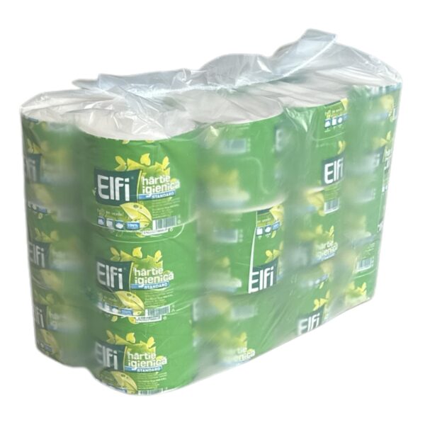 Hartia igienica Elfi standard, este confectionata din hartie reciclata 100% cu fasii pretaiate si in doua straturi, avand 50 de metri de hartie pe rola ce va asigura igiena zilnica si optima atat adultilor ca si copiilor. Acest tip de Hartie igienica se poate arunca fara nici un fel de problema in vasul de toaleta fara sa stati cu grija ca acesta va infunda canalizarea. Aceasta iti va permite sa te mentii mereu curat, zonele sensibile si iti va da o senzatie de prospetime.