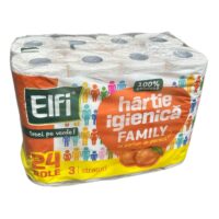 Hârtia igienică ELFI este ideală pentru utilizarea zilnică, oferindu-ți un produs de înaltă calitate, care îmbină funcționalitatea cu un design atractiv. Cu un pachet de 24 de role, vei avea mereu la îndemână suficientă hârtie igienică pentru întreaga familie, asigurându-ți confortul și igiena necesare.
