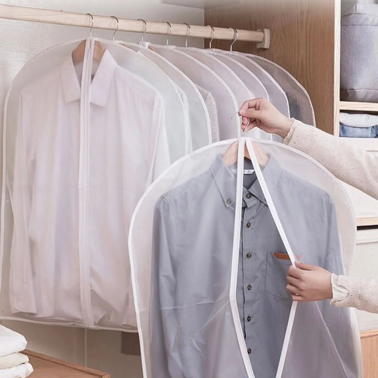 Husa de protectie haine dotata cu fermoar cu dimensiunile de 60 x 100 cm este un produs special conceput pentru protejarea oricarui tip de haina in timpul transportarii sale. Acesata este fabricata din PEVA (polietilena vinil acetat), un plastic transparent foarte flexibil si durabil in timp, capabil sa tina departe stropii de apa, praful si murdaria. Husa protectie haine are un fermoar pe toata lungimea sa, permitand introducerea usoara a hainelor cu tot cu umeras. In plus, poate fi utilizata si pentru depozitarea indelungata a hainelor, fie ca este vorba de compleuri, costume, pantaloni, paltoane, jachete etc.