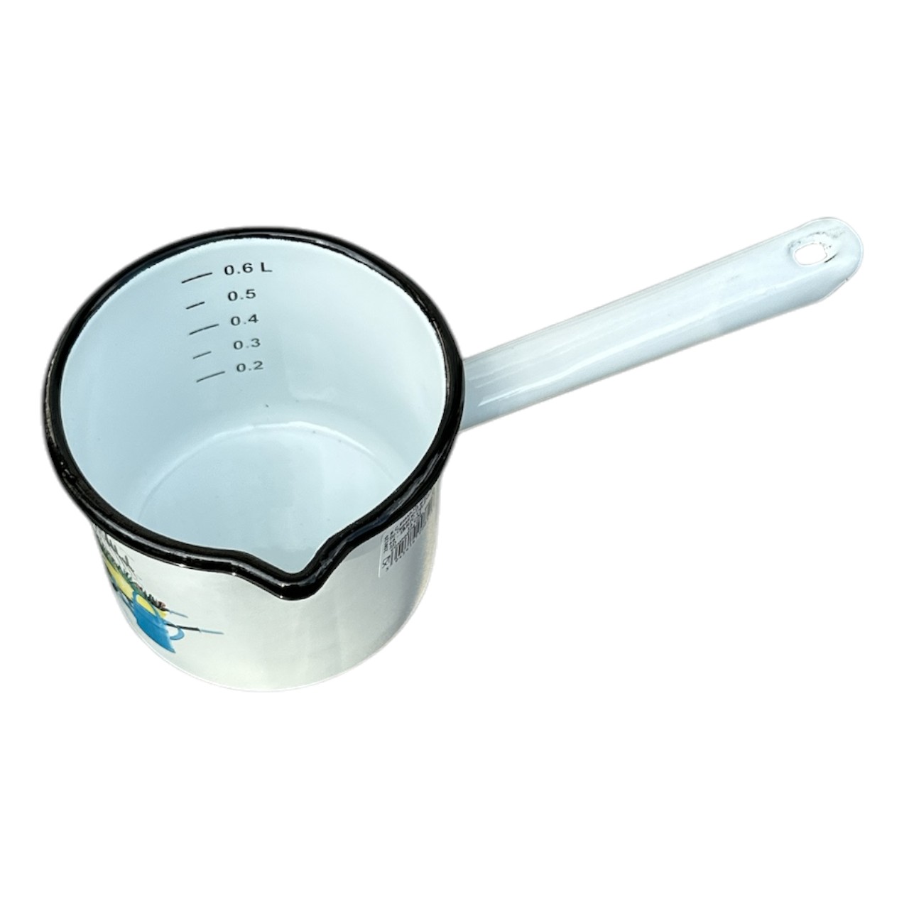 Ibricul emailat de 600 ml capacitate este un recipient care are ca si intrebuintare, fierberea diferitelor lichide sau alimente. Se poate utiliza in fierberea urmatoarelor lichide si alimente: cafea, ceai, vin, oua, smad. Modelul de ibric pentru ceai si cafea are un maner cu care se poate manipula recipientul direct de pe foc, fara ca proprietarul sa intra in contact cu partea incinsa a obiectului. Ibricul emailat de 600ml este facut din otel foarte rezistent cu un strat de jumalt (email) ce ofera proprietati antibacteriene in timp ce fereste produsul de zgarieturi. Rezistenta acestui produs la caldura este de pana la 250°C.