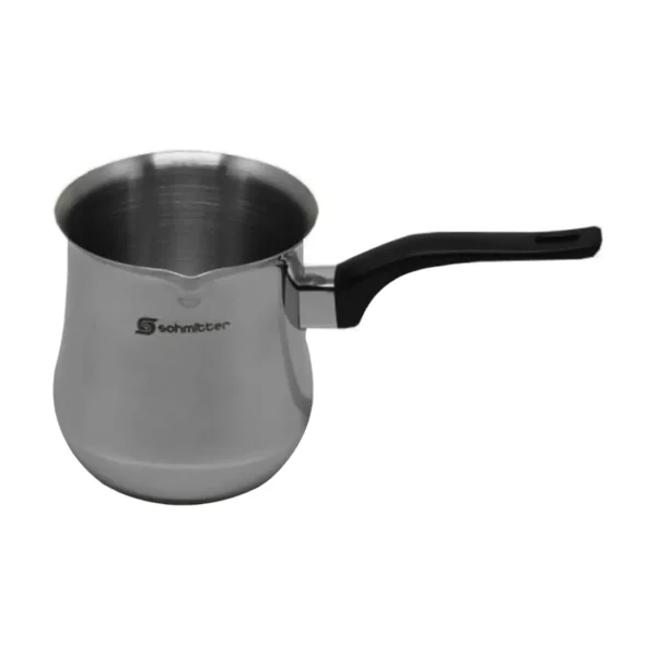 Ibricul din inox Schmitter de 500 ml cu diametrul de 9 cm este un produs creat special pentru incalizrea lichidelor sau prepararea rapida a cafelei si ceaiului. Acesta este o alegere practica si de incredere intrucat este abricat din inox alimentar care nu modifica in vreun fel continutul este rezistent la uzura si nu rugineste, fiind excelent pentru uzul casnic. Ibricul Schmitter are o capacitate de 500 ml pentru 2 cani rapide de cafea. In plus este prevazut cu toarta imbracata in bachelita care previne transferul termic iar pe marginea superioara are formata o fanta (cioc) care asigura o turnare usoara a lichidelor.