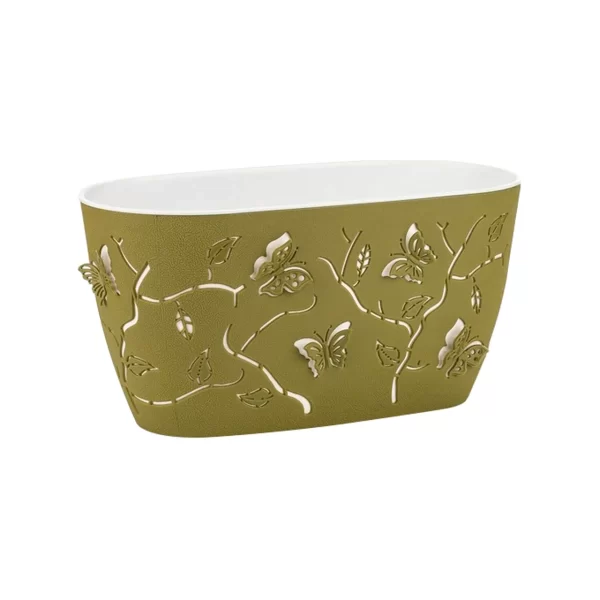 Jardiniera plastic tip decoravita cu fluturi 3D de culoare verde adauga un plus de eleganta si farmec in decorul tau floral. Realizata din plastic durabil, aceasta este perfecta pentru a expune plantele tale preferate intr-un mod creativ. Detaliile delicate ale fluturilor 3D adauga un element tridimensional decorului, imbunatatindu-l semnificativ de mult. Aceasta jardiniera decorativa 3D cu fluturi este alcatuita din 2 piese, una interioara alba si cealalta (cu fluturi) care o imbraca. Mai mult decat atat, este suficient de flexibila, astfel incat sa reziste socurilor de impact si manipularii repetate. Jardiniera 3D poate fi utilizata atat pentru decorarea spatiilor interioare, cate si celor exterioare, cum ar fi: balconul, gradina, terasa, foisorul sau pervazul ferestrei.