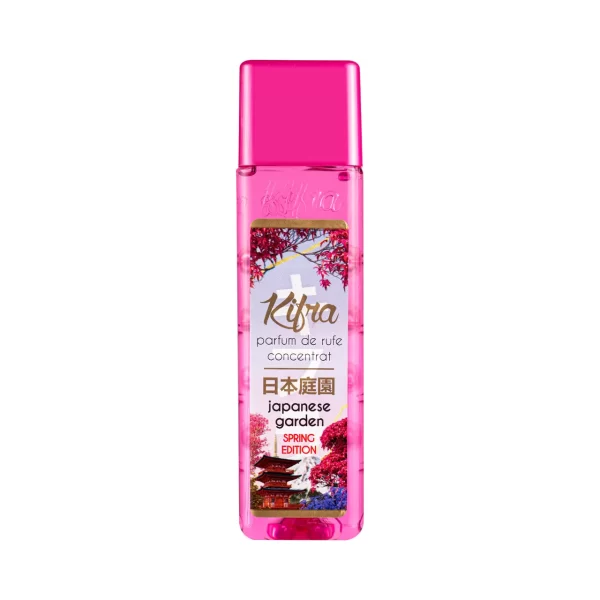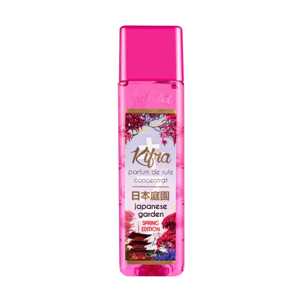 Kifra parfum de rufe Japanese Garden - 200 ML este o editie limitata care va ofera parfumul intens al gradinilor japoneze, aromate cu flori de cires. Intensitatea parfumului de rufe Kifra Japanese Garden a fost conceput sa ofere sentimentul de liniste si calm in doar cateva picaturi adaugate in ciclul de spalare sau clatire al masinii de spalat automate. Parfumul aromat este menit sa persiste pe hainele proaspat spalate si uscate timp indelungat.