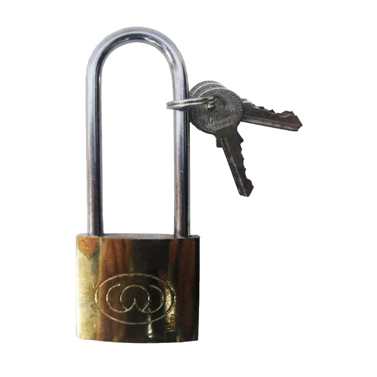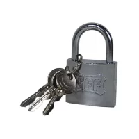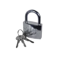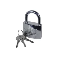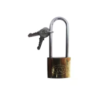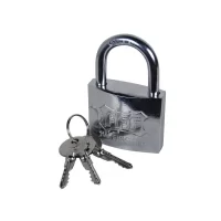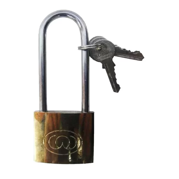 Lacatul de 50 mm, lung dotat cu 3 chei de culoare auriu realizat din alama, este un dispozitiv pentru inchidere dotat cu inel otelit si cromat, tratat cu azotat de carbon, ideal pentru siguranta cailor de acces prevazute cu porti sau in diverse fabrici sau cladiri, pentru asigurarea bicicletelor, garajelor sau boxelor impotriva furturilor. Acest tip de lacat este dotat cu mecanism de dubla inchidere. Stifturile lacatului sunt fabricate din otel tratat, avand un grad inalt de durabilitate si rezistenta impotriva oxidarii.