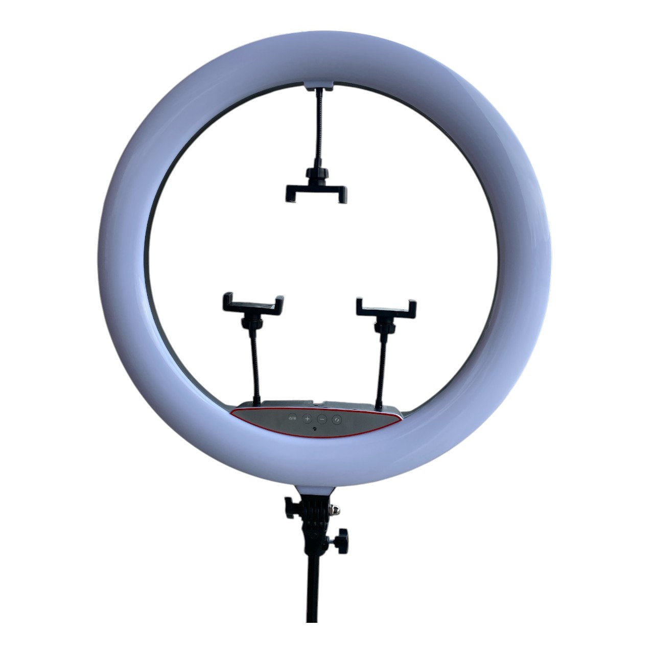 Lampa circulară LED mare (Ring light) cu trepied, având un diametru impresionant de 56 cm, este instrumentul ideal pentru a obține iluminare profesională în orice context. Modelul LJJ-22" este conceput pentru a oferi trei moduri de lumină (Rece, Caldă și Neutru), cu temperaturi de culoare variind între 2700K și 6500K, asigurând iluminarea perfectă pentru fiecare nevoie.
