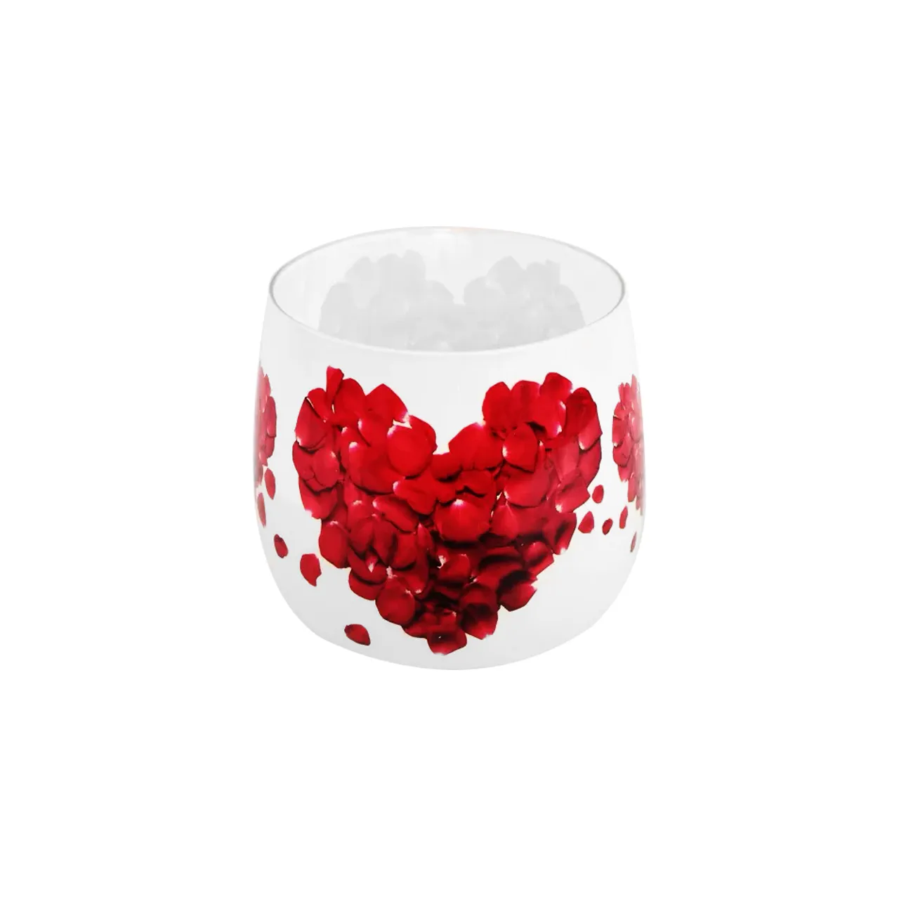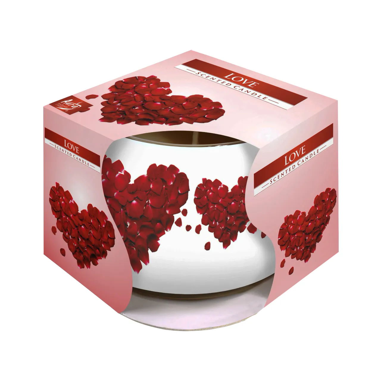 Lumanarea parfumata Love (dragoste) este realizata din parafina, asigurand astfel o ardere lenta si uniforma. Aceasta este o optiune ideala pentru cei care cauta o lumanare cu un parfum imbietor, creat special pentru serile romantice alaturi de persoana iubita. Lumanarea parfumata love mai poate fi utilizata si in alte situatii, cum ar fi atunci cand doriti sa va relaxati dupa o zi obositoare sau doriti sa faceti o baie la lumina acestor lumanari parfumate. Un alt aspect atragator al lumanarii parfumate Love este paharul in care sta. Acesta este imprimat cu inimioare din petale de trandafiri rosii, oferind un design romantic si fermecator. Paharul poate fi folosit dupa ce lumanarea s-a terminat, ca si decoratiune sau pentru a depozita mici obiecte.