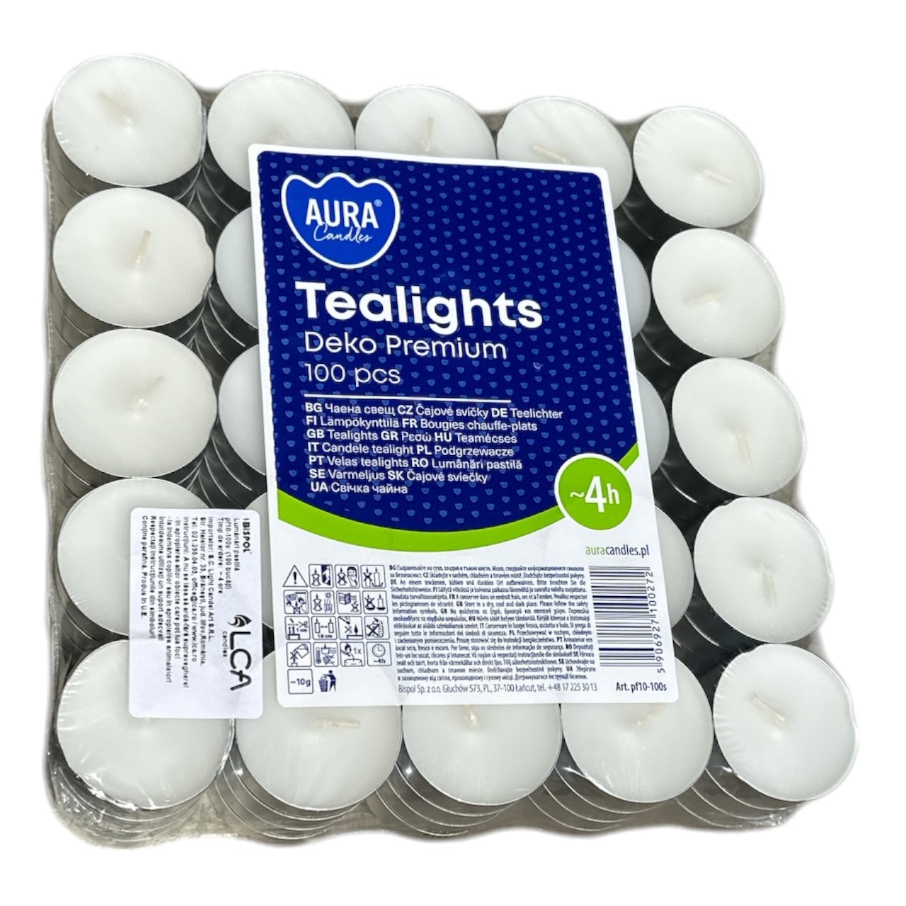 Lumanarile tip pastila in cantitate de 100 de bucati marca Deko Premium sunt imbracate in metal, prevazute cu fitil pe centrul lor care incepe sa topeasca parafina dupa ce a fost aprins avand o duratie de maxim 4 ore de iluminare. Lumanarile model pastila sunt utilizate in general pentru iluminarea zonelor fara curent electric, pentru crearea unei ambiente romantice si calde dar mai pot fi folosite si pentru diverse obiceiuri religioase sau in cazuri urgente precum: scurtcircuitul instalatiei electrice. Este indicat sa nu lasati lumanarile tip pastila nesupravegheate atunci cand sunt aprinse pentru a evita un eventual incendiu.