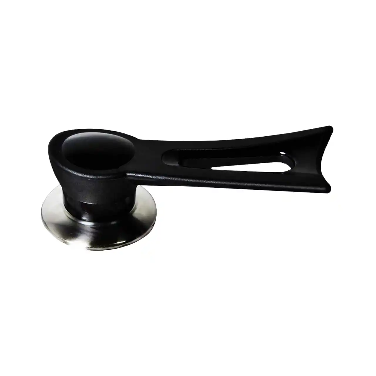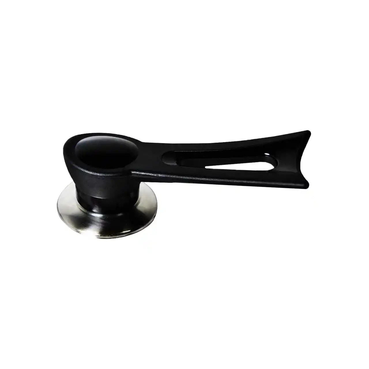 Manerul de capac oala de culoare negru este alcatuit dintr-un buton cu prindere prin surub si un maner lung realizat din textolit, avand o suprafata antiaderenta. Lungimea sa de 14.5 cm este suficienta pentru o apucare ferma cat si o manevrare lipsita de efort a oricarui tip de capac, fie din otel sau sticla (yena). Manerul de capac oala dispune de un distantier din plastic, o saiba si un inel mare ce perminte o prindere sigura de capacul oalei sau capacul din sticla, fara sa il deterioreze in timp. Aspectul manerului de capac oala este unul modern ce va imbunatatii orice tip de capac, fie ca este pentru oala, cratita sau tigaie.