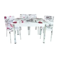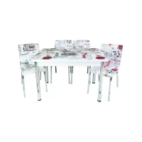 Specificatii Masa living / bucatarie din MDF si sticla cu 4 scaune: