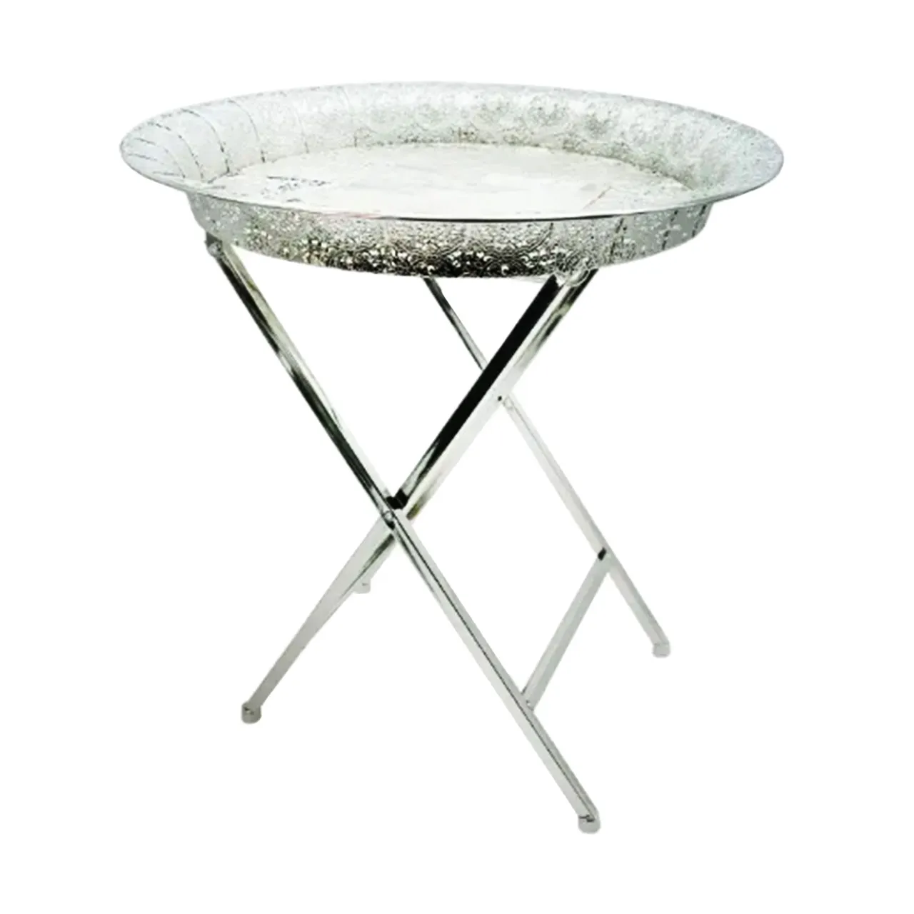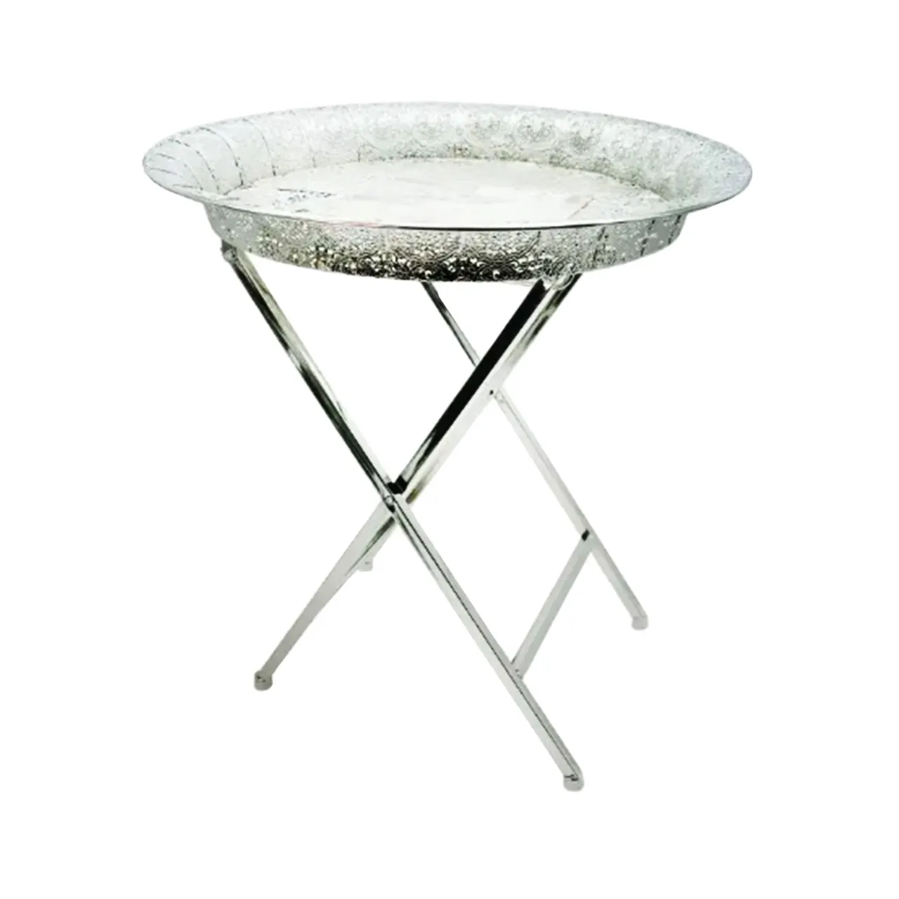 Masa pliabila metalica cu forma rotunda are diametrul de 53 cm si inaltime de 51 cm fiind perfecta pentru utilizarea ai in exterior sau interior. Masa metalica rotunda, ofera un aspect interesant datorita marginilor blatului inalte, asemanator unei farfurii. Aceasta caracteristica adauga un element estetic placut si contribuie la mentinerea obiectelor pe masa in siguranta, fara a cadea usor.