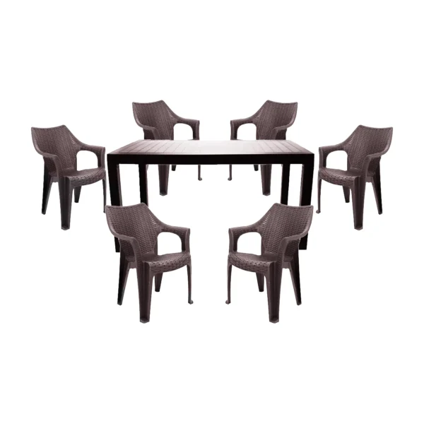 Masa Terasa Gradina plastic cu 6 scaune ratan, maro