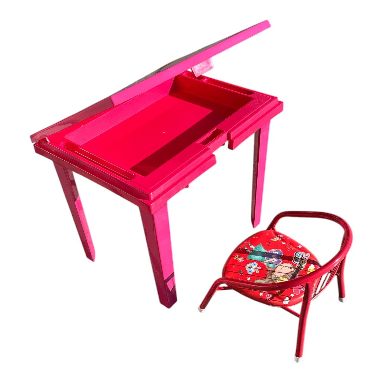 Masuta din plastic cu sertar si scaun de copii este un set special, practic si util, perfect pentru a crea un spatiu de lucru sau de joaca confortabil pentru cei mici. Acesta este realizat dintr-un material durabil din plastic de calitate superioara, ceea ce il face rezistent la uzura si usor de curatat si intretinut. Masuta este prevazuta cu un sertar integrat sub blat, util pentru depozitarea de jucarii, carioci sau alte obiecte, astfel incat spatiul sa ramana ordonat si curat. Dimensiunile sale compacte si greutatea redusa, fac acest set usor de mutat si reasezat in functie de preferintele si nevoile copilasilor.