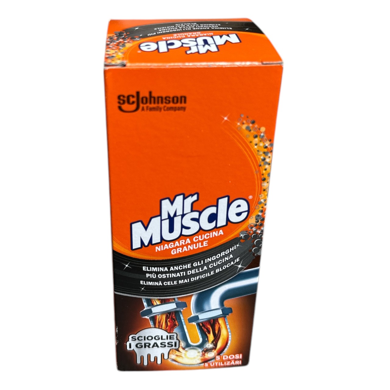 Mr Muscle® Granule pentru desfundat tevile din bucatarie in cantitate de 250 grame este un mare ajutor atunci cand se infunda tevile de scurgere datorita mizeriei depuse pe acestea. Granulele Mr muscle actioneaza eficient in doar 15 minute prin dizolvarea grasimii, parului si mizeriei acumulate din resturi alimentare. Mr muscle granule poate fi folosit cu incredere pentru desfundarea tevilor din bucatarie si baie fara sa atace materialul din care sunt confectionate tevile. De asemenea, Mr muscle granule nu trebuie utilizat atunci cand infundatura din interiorul tevii este format din plastic sau obiecte metalice.