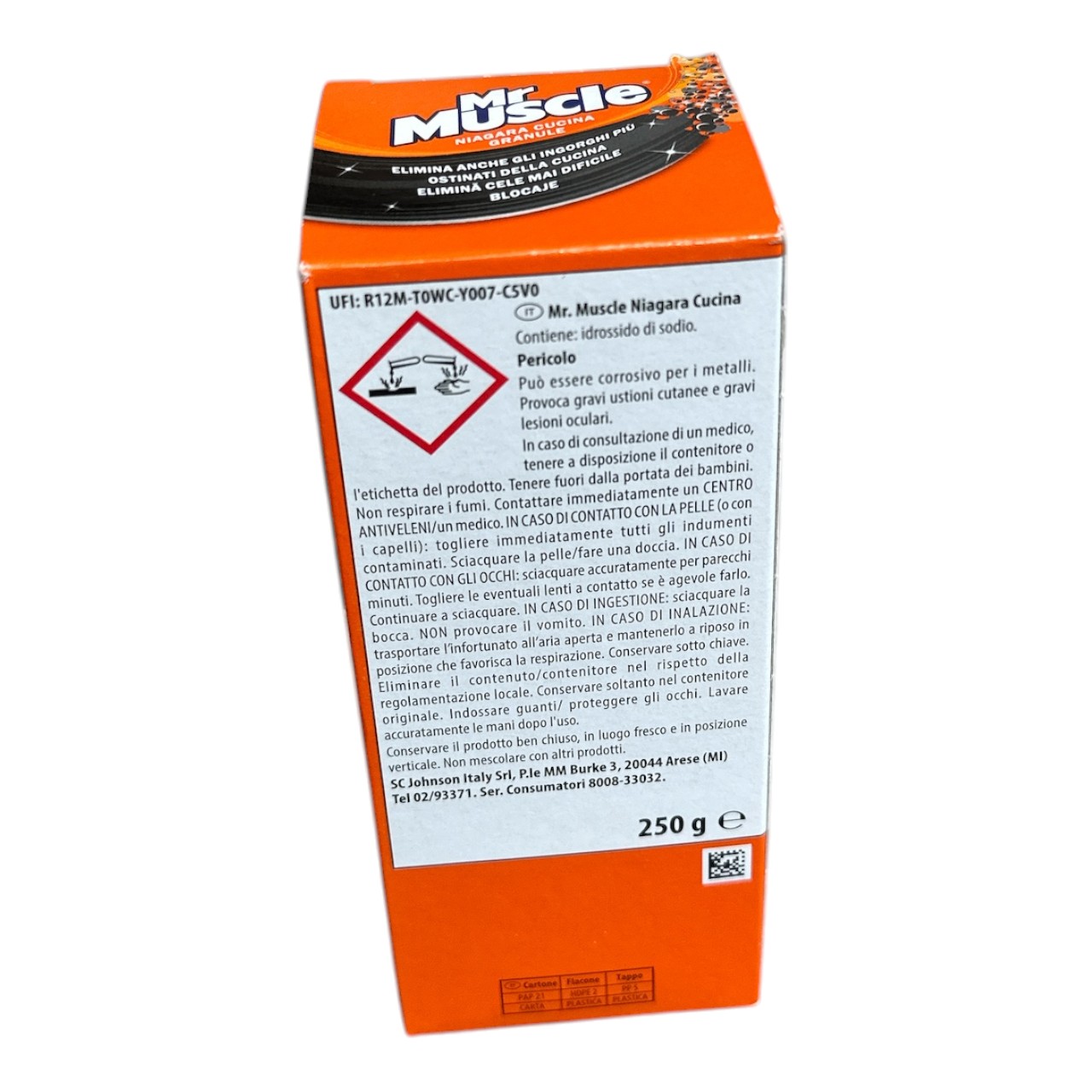 Specificatii Mr Muscle granule ~ pentru desfundat tevile din bucatarie, 250 g