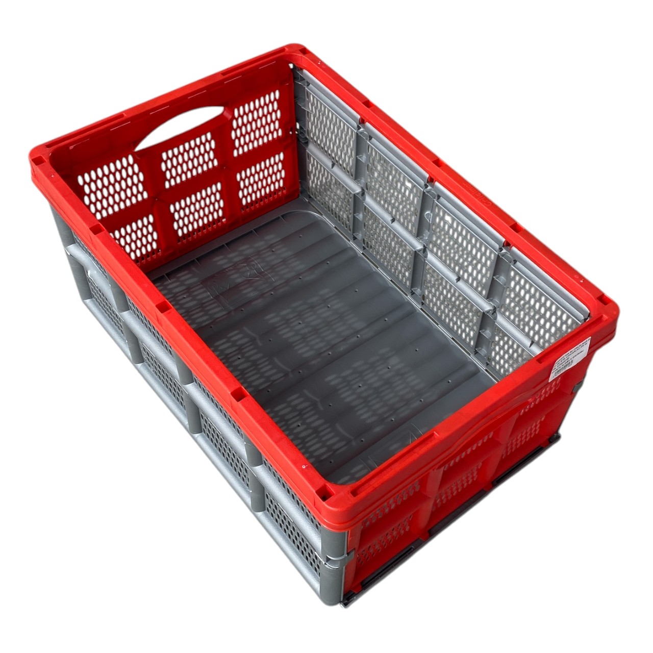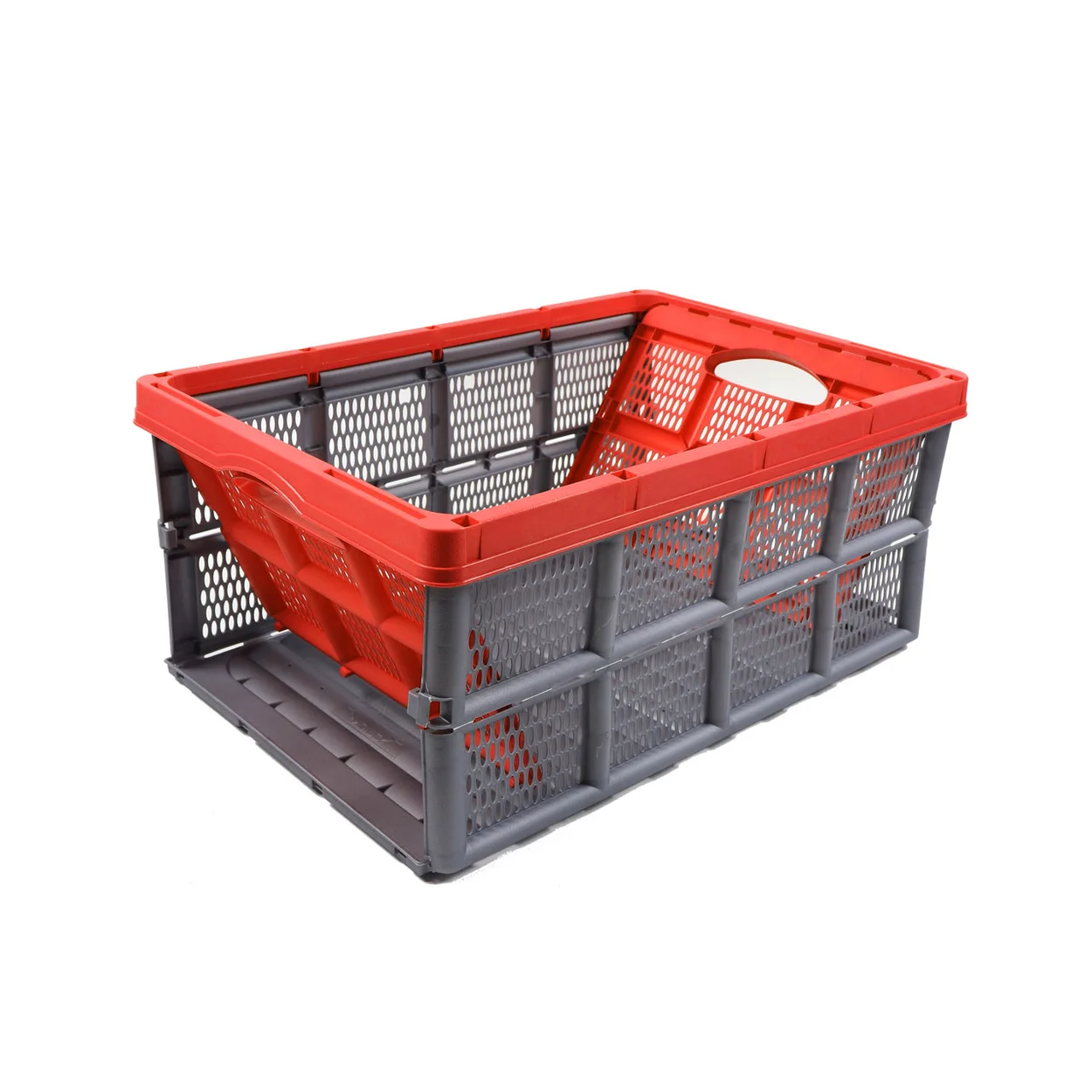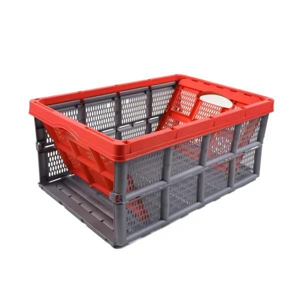 Naveta pliabila din plastic cu manere cu dimensiunea de 47x31x21 cm este o lada utila pentru transportul sau depozitarea fructelor, legumelor sau a altor tipuri de obiecte si produse. Naveta pliabila cu manere are peretii laterali pliabili ceea ce permite sa o depozitati in spatii reduse, iar atunci cand o asamblati asigura un volum de utilizare de 30 de litri. Ladita pliabila rezista excelent la o greutate de maxim 20 kg, nu se deterioreaza din cauza socurilor si poate fi curatata foarte usor cu ajutorul unei lavete umede.