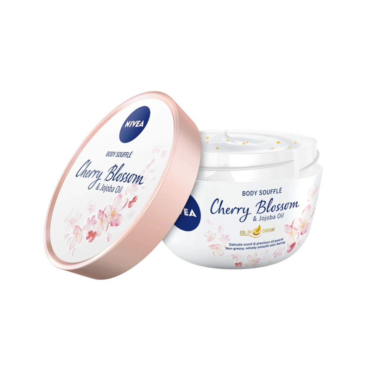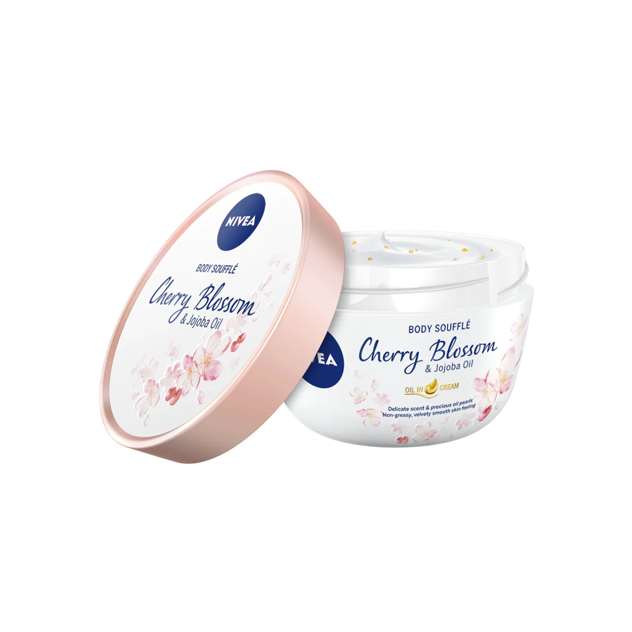 Crema de corp Cherry Blossom and Jojoba Oil de la Nivea, in varianta de 200 ml, iti ofera o experienta de rasfat pentru piele cu noul sau souffle de corp cu flori de cires si ulei de jojoba. Perlele de ulei hidratant sunt imbibate intr-o crema cu o formula usoara, avand un parfum subtil al florilor de cires. Se aplica foarte usor si este absorbita imediat in piele, oferind senzatia de catifelare si ingrijire intensa. Cream de corp Nivea iti imbraca piele intr-o aroma imbietoare cu parfum delicat al florilor de cires si perle de ulei pretios. In plus, hidrateaza intens, absorbindu-se rapid, astfel incat sa netezeasca si sa catifeleze pielea. Este indicata in special pentru tratarea pielii uscate.