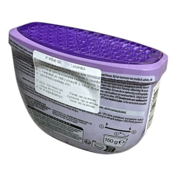 Odorizant camera At Home exclusive lavanda 150g este un odorizant de camera sub forma de cristale gel de mici dimensiuni care au rolul de a improspata incaperea in care este amplasat cu un miros placut de lavanda. De asemenea, acest Odorizant camera At Home exclusive lavanda 150g neutralizeaza mirosurile neplacute, iar parfumul acestuia persista timp de aproximativ 60 de zile. Odorizantul contine 150g de cristale gel.