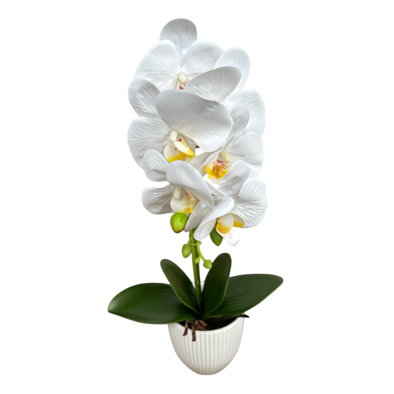Orhidee Artificiala 1 Fir in Ghiveci, Alb-Galbena, 50 cm