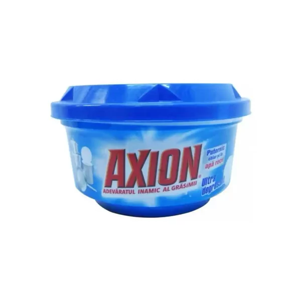 Noua tehnologie cu care a fost imbunatatit detergentul pasta Axion ii confera acestuia puterea de degresare 100% eliminand chiar si cele mai persistente grasimi. Axion Ultra degresant elimina resturile de mancare lasand vesela curata fara mirosuri urate si invaluite intr-un parfum puternic de prospetime.