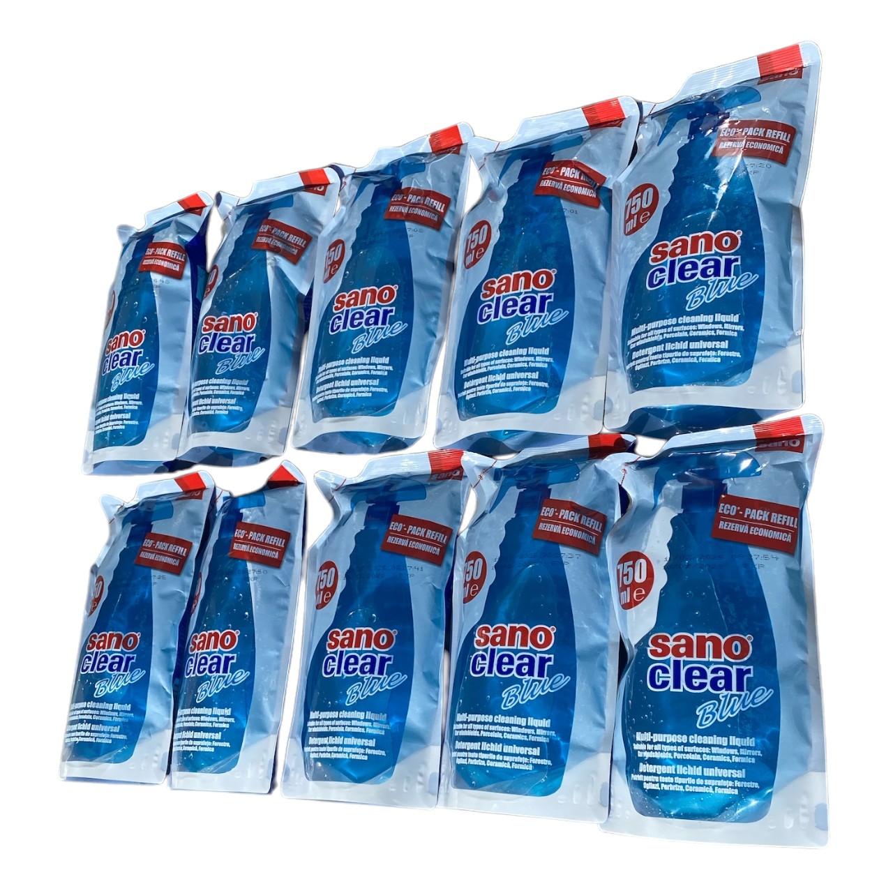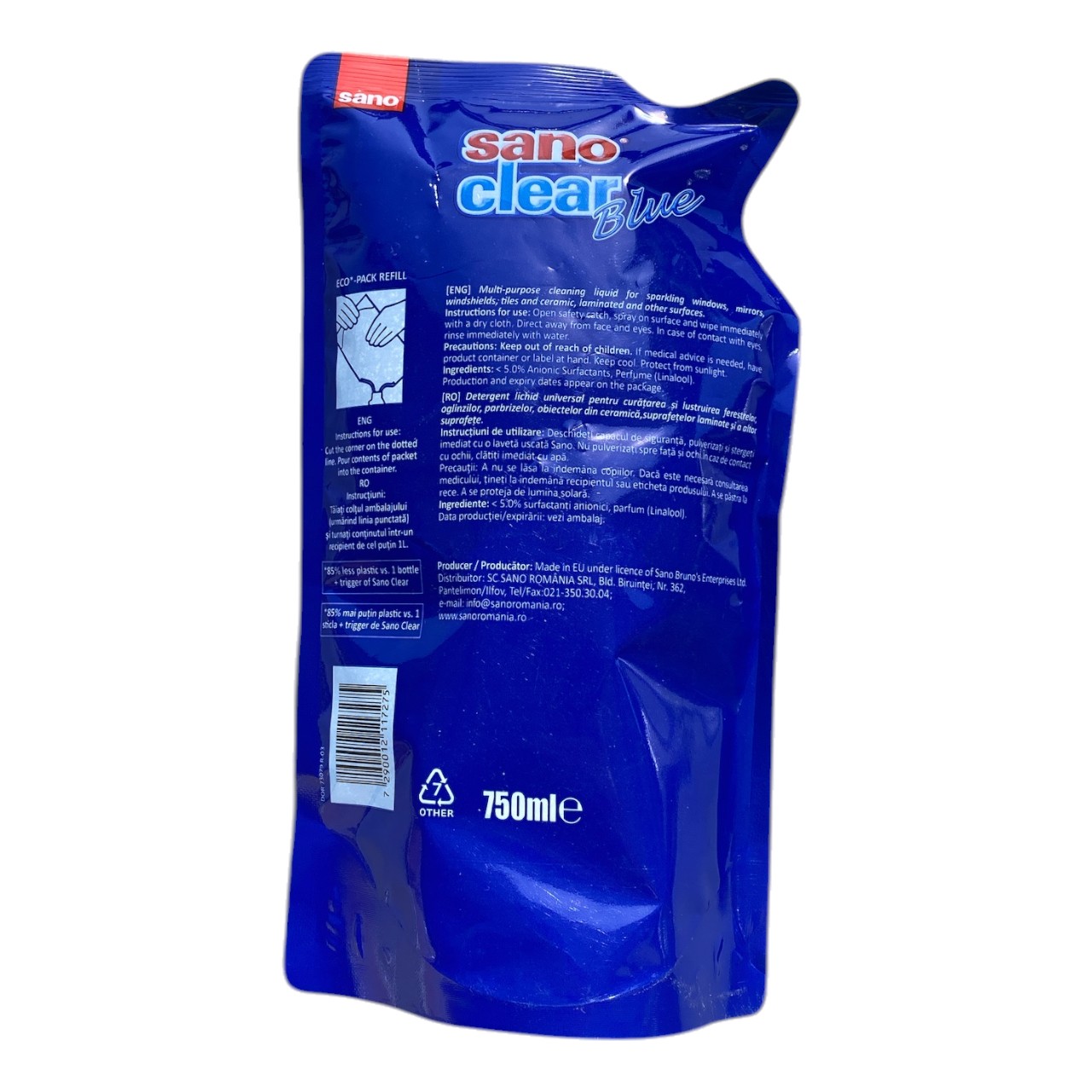 Specificatii: Pachet - 10 x Solutie spalat geamuri Sano Clear Blue 750ml
