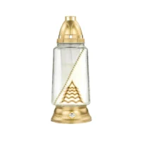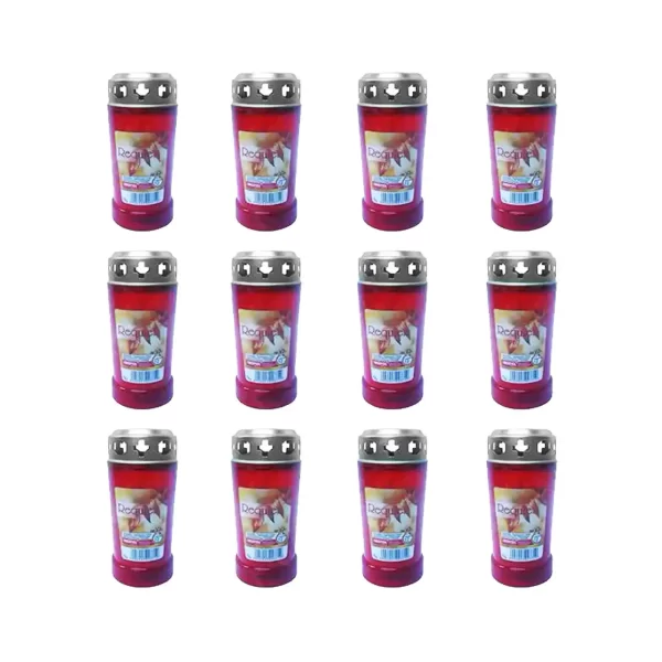 Pachetul cu 12 bucati x Candela cu capac auriu este obtinuta din plastic cu transparenta de 50% iar in interior este prevazuta cu o lumanare groasa obtinuta din parafina. Capacul auriu al candelei este rezistent la caldura intensa, socuri si are multiple orificii laterale in forma de cruce. O astfel de candela cu lumanare si capac este destinata pentru ritualurile bisericesti si sarbatorile de paste. De asemenea, candela mai poate fi de folos si in situatii de urgenta cand ramaneti fara curent electric.