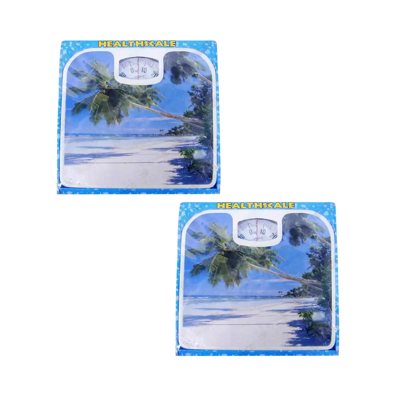 Pachetul cu 2 cantare mecanice pentru persoane (cantare corporale) imprimate cu model plaja, sunt ideale pentru utilizarea lor in propriul camin in momentele in care doriti sa fiti la curent cu propria greutate. Cantarul pentru persoane tip mecanic are carcasa metalica, afisaj pozitiionat in partea de sus, iar pe spatele sau are o mini rotita pentru reglarea acului aratator al greutatii. Cantarele mecanice pot sustine o greutate maxima de pana la 130 de kg, sunt rezistente la socuri, apa sau substante chimice, multumita stratului protectiv de vopsea si autocolantului aplicat pe suprafata lor.