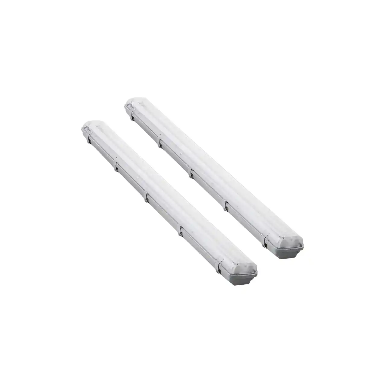 Pachetul cu 2 bucati de corp neon IP65 cu 2 tuburi de 18W cu grad de protectie IP65 de la NOVElite este foarte util atat in spatii interiore (inchise) cat si cele exterioare datorita garniturii sale speciale care impiedica infiltrarea apei. Corpul de neon este prelucrat din ABS, foarte rezistent la socuri, putand fi montat pe tavan sau perete.