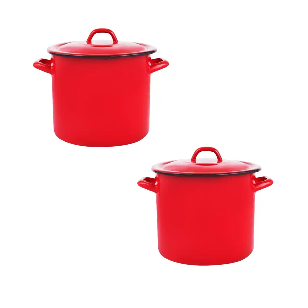 Pachet - 2 x Oala emailata 15l rosie cu capac